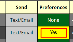NOTE: Any Waitlist entry that has Preferences entered such as Wheelchair Access, Highchair or Booster Seat requests or any kind of general request or note will be shown by the word "Yes" on a yellow background in the "Preferences" column.