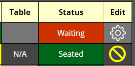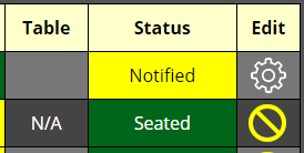 - The "Waiting" cell changes to a yellow background with the word "Notified" indicating that the guest has been notified of the table availability.